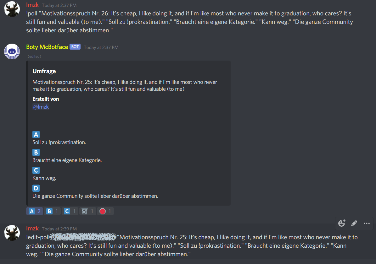 Die Option wird angeboten, Boty löst aber #die Emojireaktion nach dem Editen nicht mehr aus.